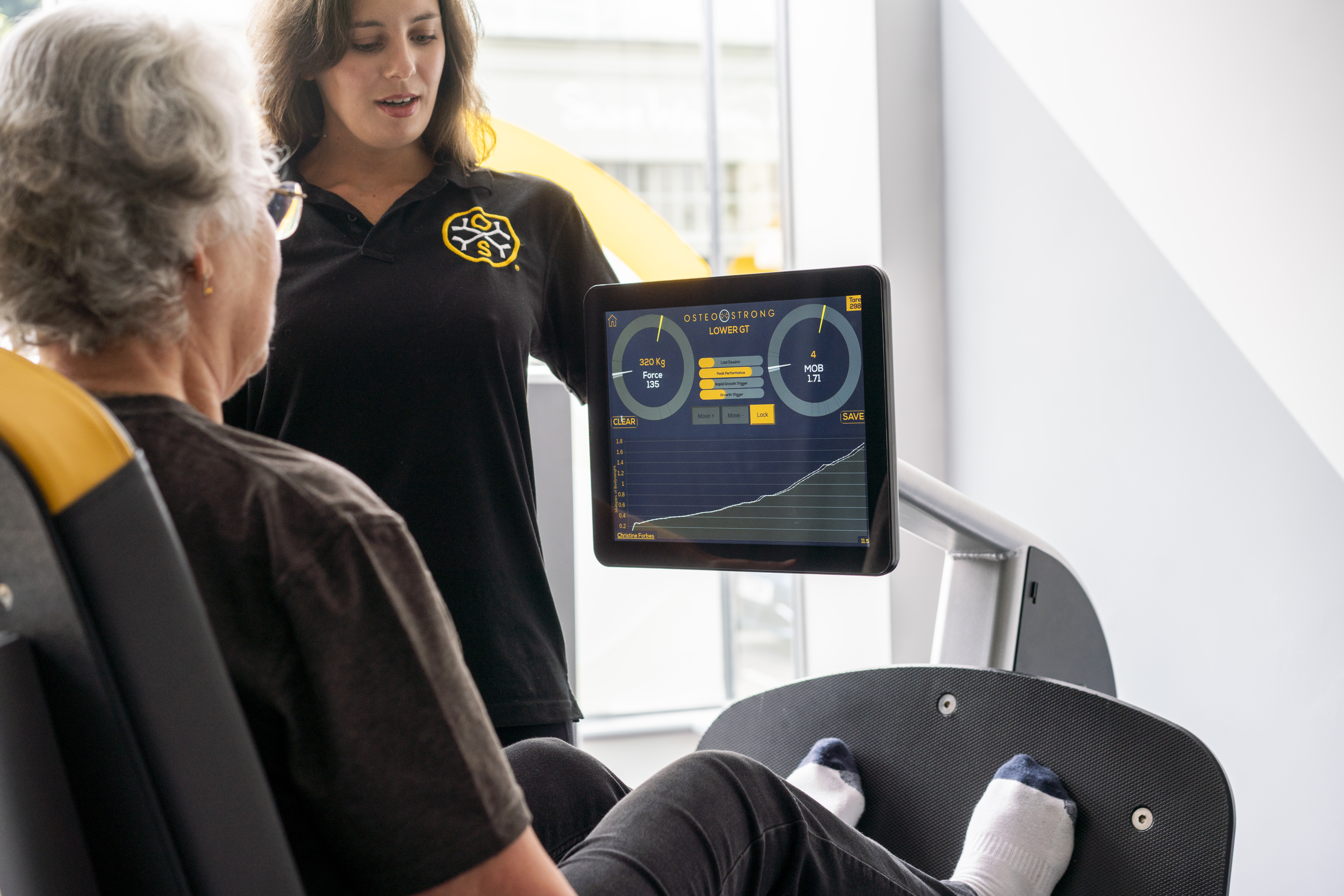 The "OsteoStrong Experience": Try the equipment safely under the guidance of Sarah, our lead coach.